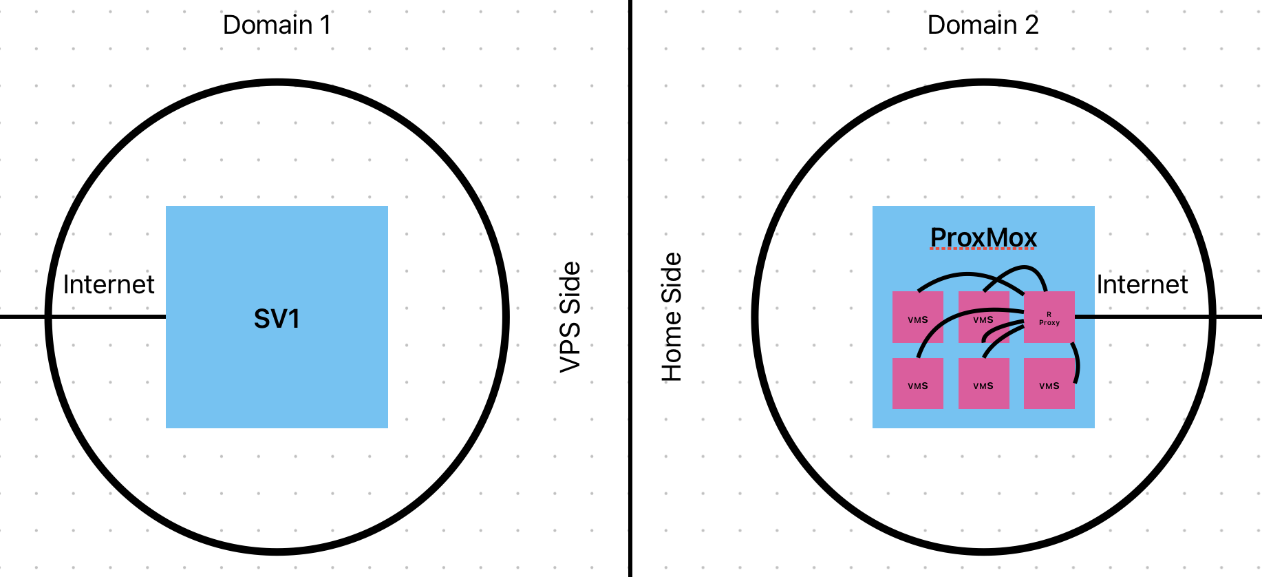 For a while, I was using two domains for my lab. One for things hosted on a vps (this and other websites), and one for things hosted at home (MiniFlux and other stuff).1