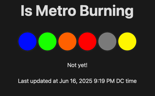 A long time ago, there was a fun little website for the DC Metro. That checked if any of the lines, were on fire. That site died years ago. I was hoping that it would someday return, but alas, it never did… So I did it myself.