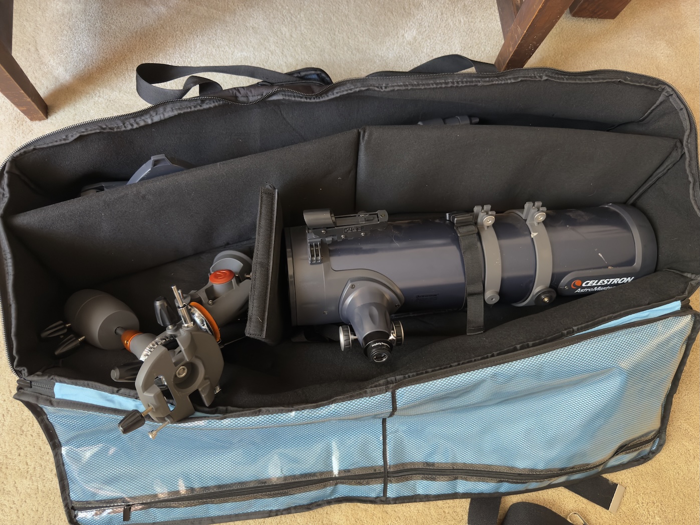 A while back, I posted about checking out my grandfather’s telescope down in Texas. He wanted to know if it “still worked”, so we checked. Yes, it did. He passed away shortly after flying back home, and left the telescope to me. After a few months, The scope is here in Maryland.